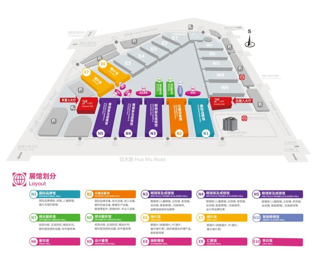 本届展会我们将启用2、3号入口厅|N1-N10馆|E6-E10馆。分布图如下,请查收: