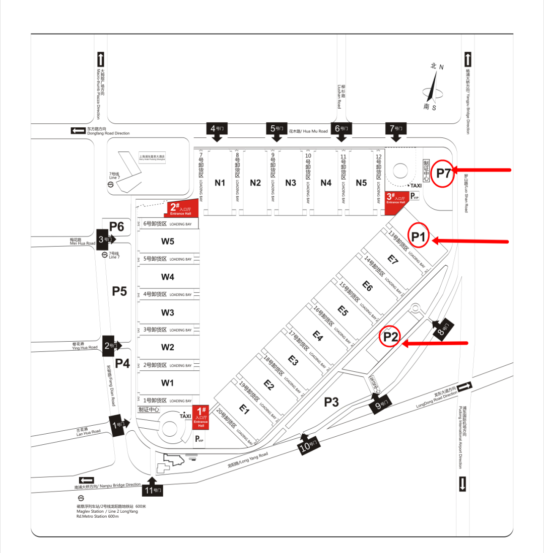 乘坐地铁2号线至龙阳路站,换乘7号线到花木路站下,然后步行即达展馆2号入口厅